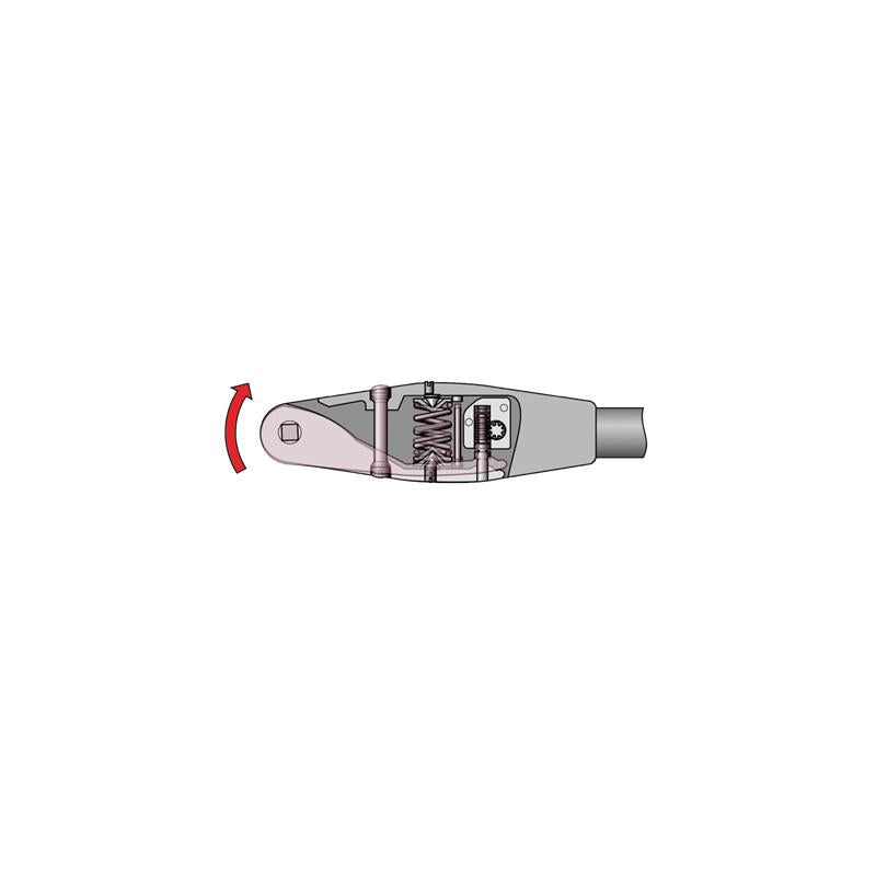 - Wahlweise 1/4", 3/8", oder 1/2" Doppel-Vierkantantrieb mit Kugelsicherung für kontrollierten Rechts- und Linksanzug