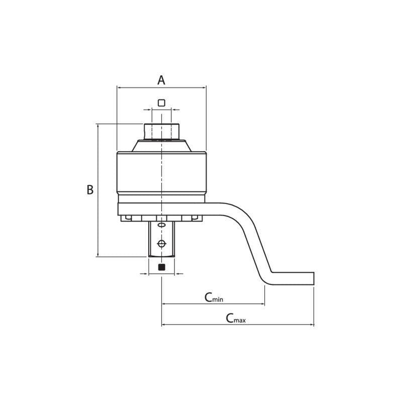 Abstand Abtriebsvierkant - Beginn Reaktionsarm (min.): 100