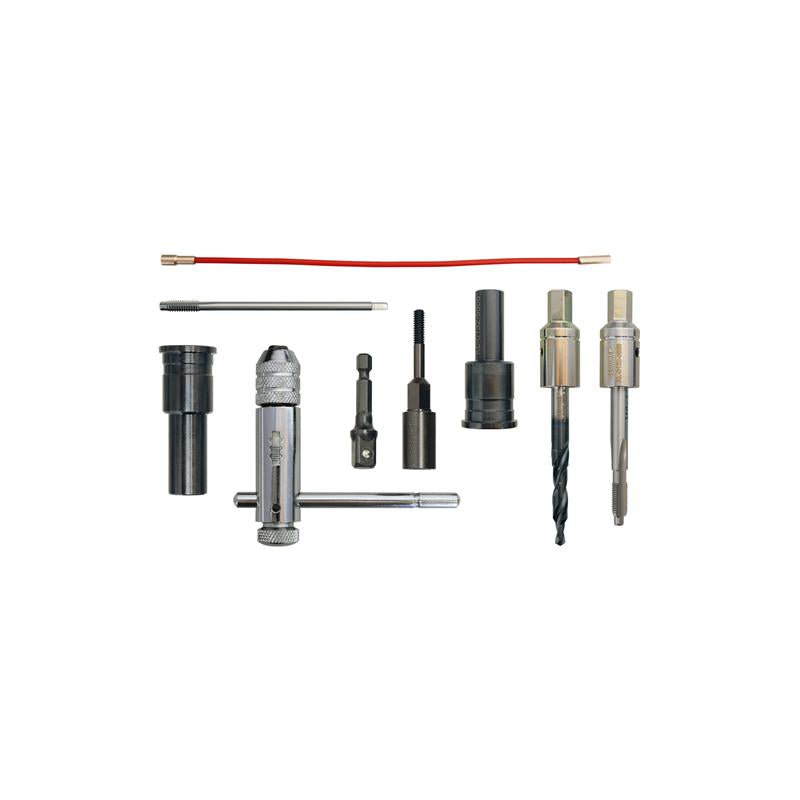 Stückliste (Text): 1x KL-0132-5501 - Zugbolzen Nr. 12-24 UNC für Schlagauszieher 1x KL-0132-5502 A - Kernlochbohrer Ø4 / Ø7 für M8x1 1x KL-0132-5503 - Gewindebohrer M8x1 1x KL-0132-5504 - Führungshülse für Fiat JTD (3,0l und 2,3l) 1x KL-0132-5505 - Führungshülse für Mercedes (OM 639, 640, 642..) 1x KL-0369-306 - Werkzeughalter mit Vierkant-Aufnahme 2,4 - 5,5 1x KL-1383-2241 - Gewindebohrer Nr.12-24 UNC mit Bohrspitze 1x KL-4007-2510 - Adapter für Bohrmaschine 3/8" Vierkant 1x KL-0126-221 - Magnetheber flexibel 1x KL-0132-5590 A - Kunststoffkoffer