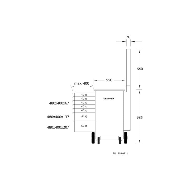 GEDORE Rollwerkbank mit Rückwand + Hakensortiment BR 1504 0511 LH
