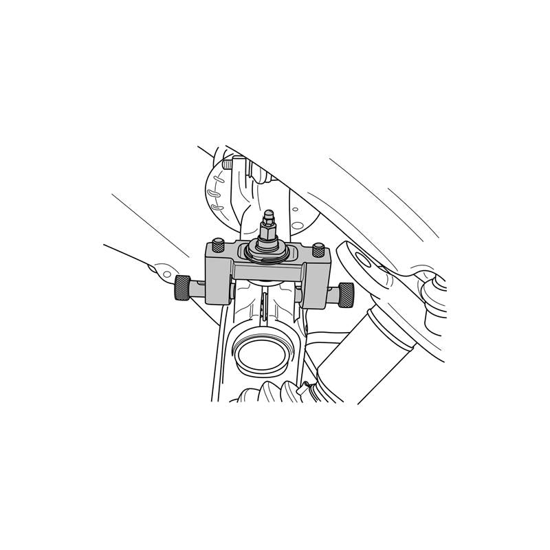 - Fachgerechtes Aufweiten: Um festsitzende Stoßdämpfereinheiten und Traggelenke beschädigungsfrei herauszuziehen, ist das fachgerechte Aufweiten der Klemmbohrung mit diesem Spreizwerkzeug unerlässlich.