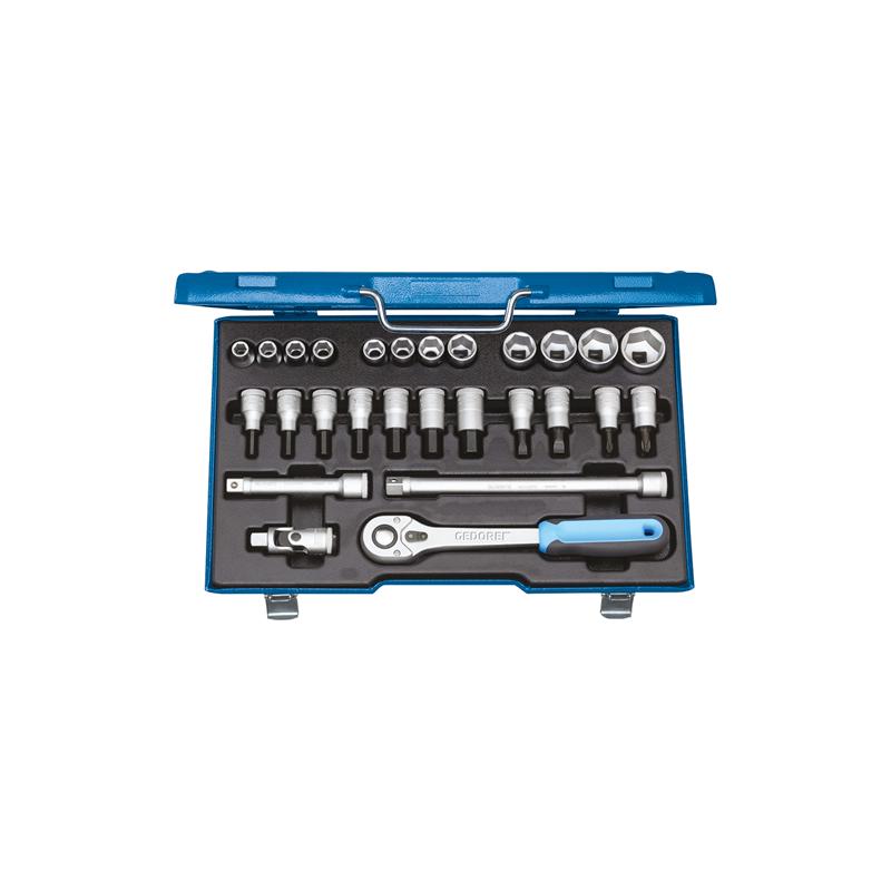 GEDORE Steckschlüsselsatz 1/2 Zoll, 27-teilig, Sechskant, 10 bis 30 Millimeter - 19 IMU-10