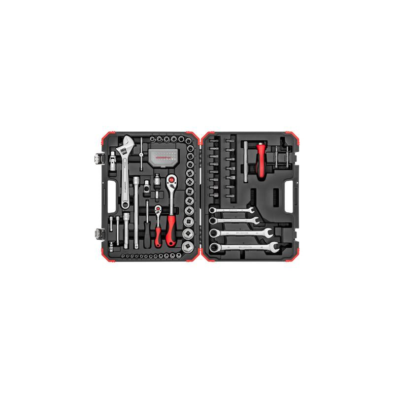 Dieses umfangreiche Werkzeugset ist ideal für alle Schraubaufgaben im Handwerk und in der Werkstatt. Die Kombination aus hochwertigen Materialien und durchdachten Funktionen ermöglicht eine effiziente und komfortable Nutzung. Der im GEDORE red Design gehaltene Kunststoffkoffer sorgt für eine ordentliche Aufbewahrung aller Werkzeuge.