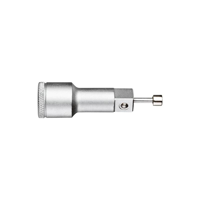 - Geeignet für handbetätigte Steckschlüsseleinsätze mit Durchgangsbohrung und Vierkantantrieb nach DIN 3120, ISO 1174, mit Kugelarretierung