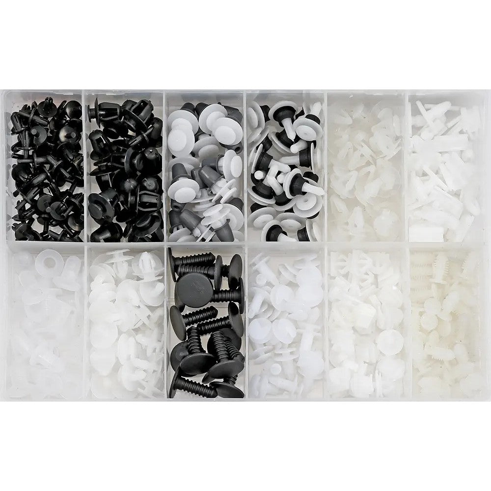 Erleichtern Sie Ihre Arbeiten in der Werkstatt mit diesem umfassenden Befestigungs Clip Satz und garantieren Sie eine professionelle Ausführung jeder Reparatur. Ideal für Mechaniker und Hobbyschrauber.