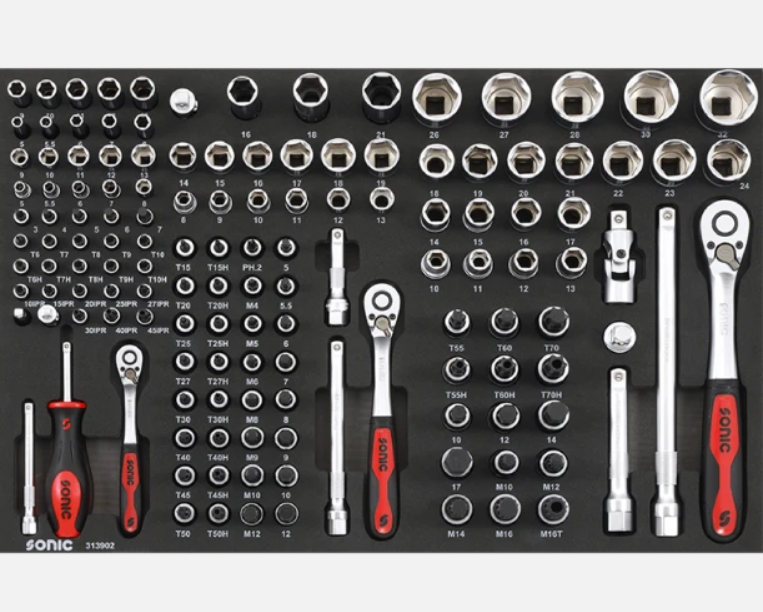 Der Sonic S10, der Werkstattwagen mit einem einzigartigen und funktionellen Design mit 8 Schubladen (7 kleine und 1 große Schublade). Die Schubladen sind 100% ausziehbar und mit kugelgelagerten Schubladenschienen ausgestattet. Das einzigartige, integrierte Schubladenblockiersystem verhindert, dass mehrere Schubladen gleichzeitig geöffnet werden können. Zusätzliche Ablagemöglichkeiten seitlich und auf der Rückseite des S10 sorgen für mehr Komfort. Zusätzlich bietet der S10 2 Dosenhalter, einen Abfallbehälter, Papierrollenhalter und 4 Vollgummiräder. Der S10 Werkstattwagen ist in mehreren Farben elektrostatisch pulverbeschichtet erhältlich: RAL 9004 schwarz, RAL 7040 grau RAL 5005 blau, RAL 3001 rot. Der S10 Werkstattwagen ist mit dem Sonic Foam System (SFS) small und medium kompatibel.