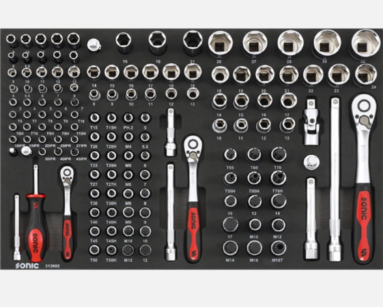 Der Sonic S10, der Werkstattwagen mit einem einzigartigen und funktionellen Design mit 8 Schubladen (7 kleine und 1 große Schublade). Die Schubladen sind 100% ausziehbar und mit kugelgelagerten Schubladenschienen ausgestattet. Das einzigartige, integrierte Schubladenblockiersystem verhindert, dass mehrere Schubladen gleichzeitig geöffnet werden können. Zusätzliche Ablagemöglichkeiten seitlich und auf der Rückseite des S10 sorgen für mehr Komfort. Zusätzlich bietet der S10 2 Dosenhalter, einen Abfallbehälter, Papierrollenhalter und 4 Vollgummiräder. Der S10 Werkstattwagen ist in mehreren Farben elektrostatisch pulverbeschichtet erhältlich: RAL 9004 schwarz, RAL 7040 grau RAL 5005 blau, RAL 3001 rot. Der S10 Werkstattwagen ist mit dem Sonic Foam System (SFS) small und medium kompatibel.