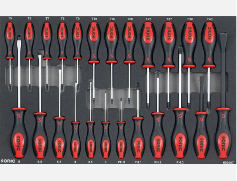 Der Sonic S10, der Werkstattwagen mit einem einzigartigen und funktionellen Design mit 8 Schubladen (7 kleine und 1 große Schublade). Die Schubladen sind 100% ausziehbar und mit kugelgelagerten Schubladenschienen ausgestattet. Das einzigartige, integrierte Schubladenblockiersystem verhindert, dass mehrere Schubladen gleichzeitig geöffnet werden können. Zusätzliche Ablagemöglichkeiten seitlich und auf der Rückseite des S10 sorgen für mehr Komfort. Zusätzlich bietet der S10 2 Dosenhalter, einen Abfallbehälter, Papierrollenhalter und 4 Vollgummiräder. Der S10 Werkstattwagen ist in mehreren Farben elektrostatisch pulverbeschichtet erhältlich: RAL 9004 schwarz, RAL 7040 grau RAL 5005 blau, RAL 3001 rot. Der S10 Werkstattwagen ist mit dem Sonic Foam System (SFS) small und medium kompatibel.