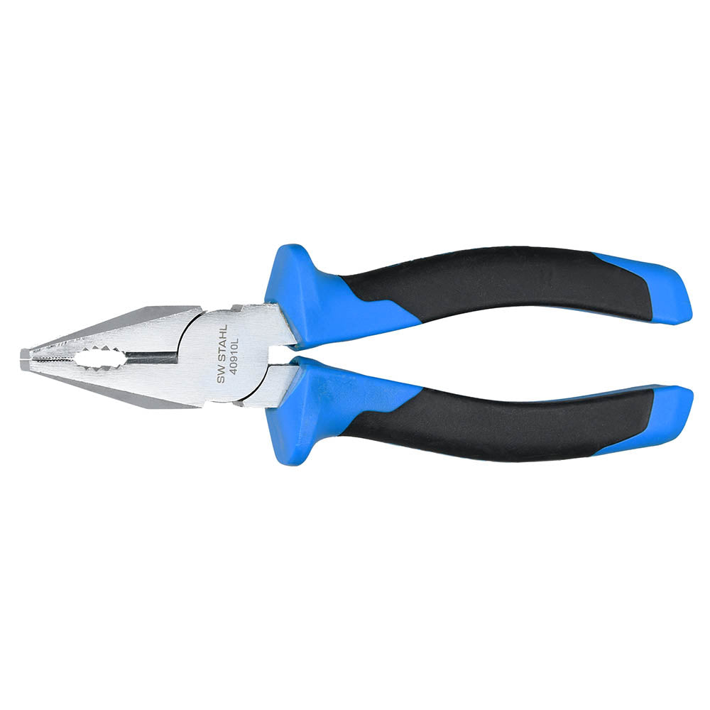 Die SW-Stahl Kombizange 180 mm ist ein hochwertiges Werkzeug, das für verschiedene Anwendungen eingesetzt werden kann. Mitotimaler Kraftverteilung und Hebelübersetzung sorgt sie für ein ermüdungsarmes Arbeiten. Dank der 2-Komponenten Griffe ist sie auch handlich und leicht zu bedienen. Perfekt für Halte-, Greif-, Biege- und Schneidarbeiten, geeignet für harte und weiche Drähte sowie Flach- und Rundmaterial.